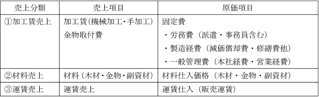 会計PJが最も力を入れたのは「邸別原価表」という新たな原価管理ツールの構築であった。邸別原価表の作成目的は、顧客先に納品する邸(家1軒)別の売上と原価を比較することにより邸別利益、案件別に損益の「勝ち負け」を見える化することである。下表は、木材プレカットの邸別売上と邸別原価の計算構造の例である。