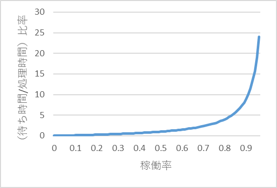 図3 稼働率vs待ち時間