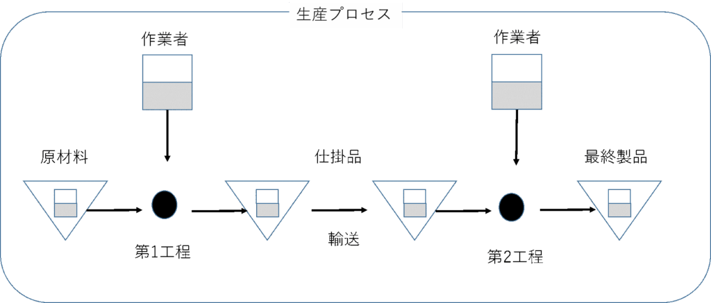 生産リードタイム=(正味作業時間+付随作業時間+運搬時間)+在庫時間