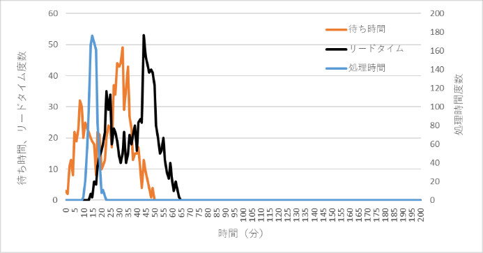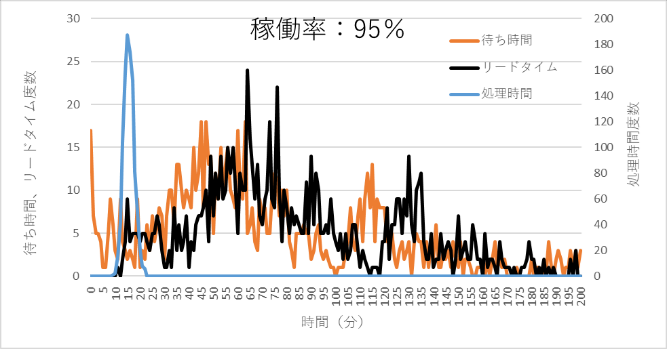 図6 稼働率95%での処理時間、待ち時間、リードタイムの分布